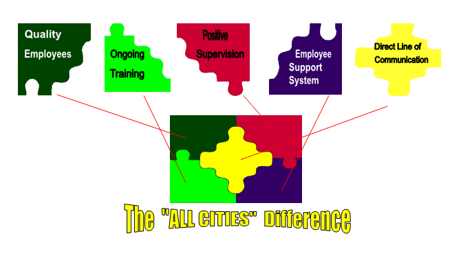 We are also convinced that the All Cities approach is more efficient economically, and that higher quality service does not necessarily entail higher costs. Based on our personal experience, we believe that fixing problems, rebuilding client confidence and replacing lost accounts is more time consuming and costly than obtaining top quality people in the first place. We focus on training and motivating our employees to stay with the company, resulting in client and employee satisfaction.